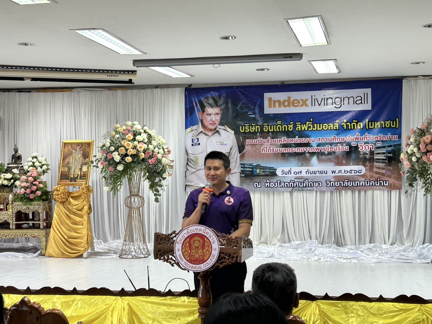 นายกิตติพงศ์ กาลัง ผู้อำนวยการ สกร.ระดับอำเภอเมืองน่าน เข้าร่วมพิธีรับมอบงบประมาณ ในการช่วยเหลือหน่วยงาน สถานศึกษา ในพื้นที่จังหวัดน่าน ที่ได้รับผลกระทบจากพายุโซนร้อน “วิภา“ โดยมี นายชัยนรงค์ วงศ์ใหญ่ ผู้ว่าราชการจังหวัดน่าน ให้การต้อนรับคณะผู้บริหารจาก บริษัทอินเด็กซ์ ลิฟวิ่งมอลล์ จำกัด (มหาชน) และรับมอบงบประมาณในการช่วยเหลือหน่วยงาน สถานศึกษา ในพื้นที่จังหวัดน่าน สกร.ระดับอำเภอเมืองน่านได้รับเงินบริจาค จำนวน 400,000 บาท ณ ห้องโสตทัศนศึกษา อาคารอำนวยการ วิทยาลัยเทคนิคน่าน