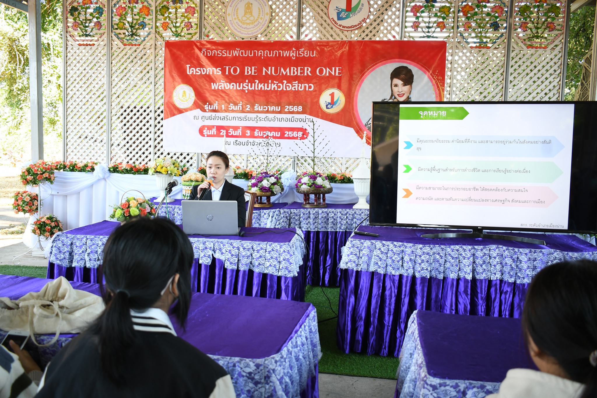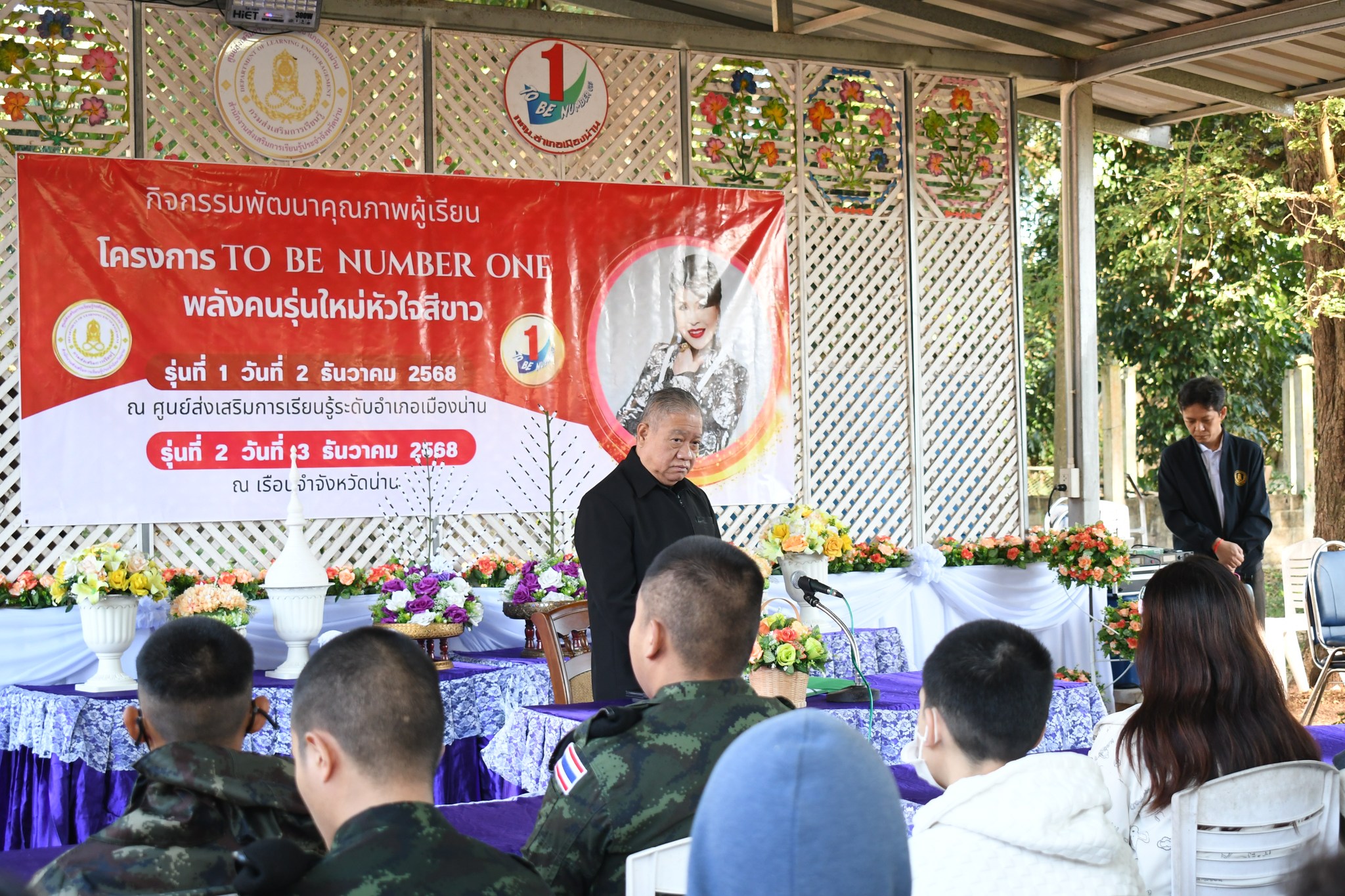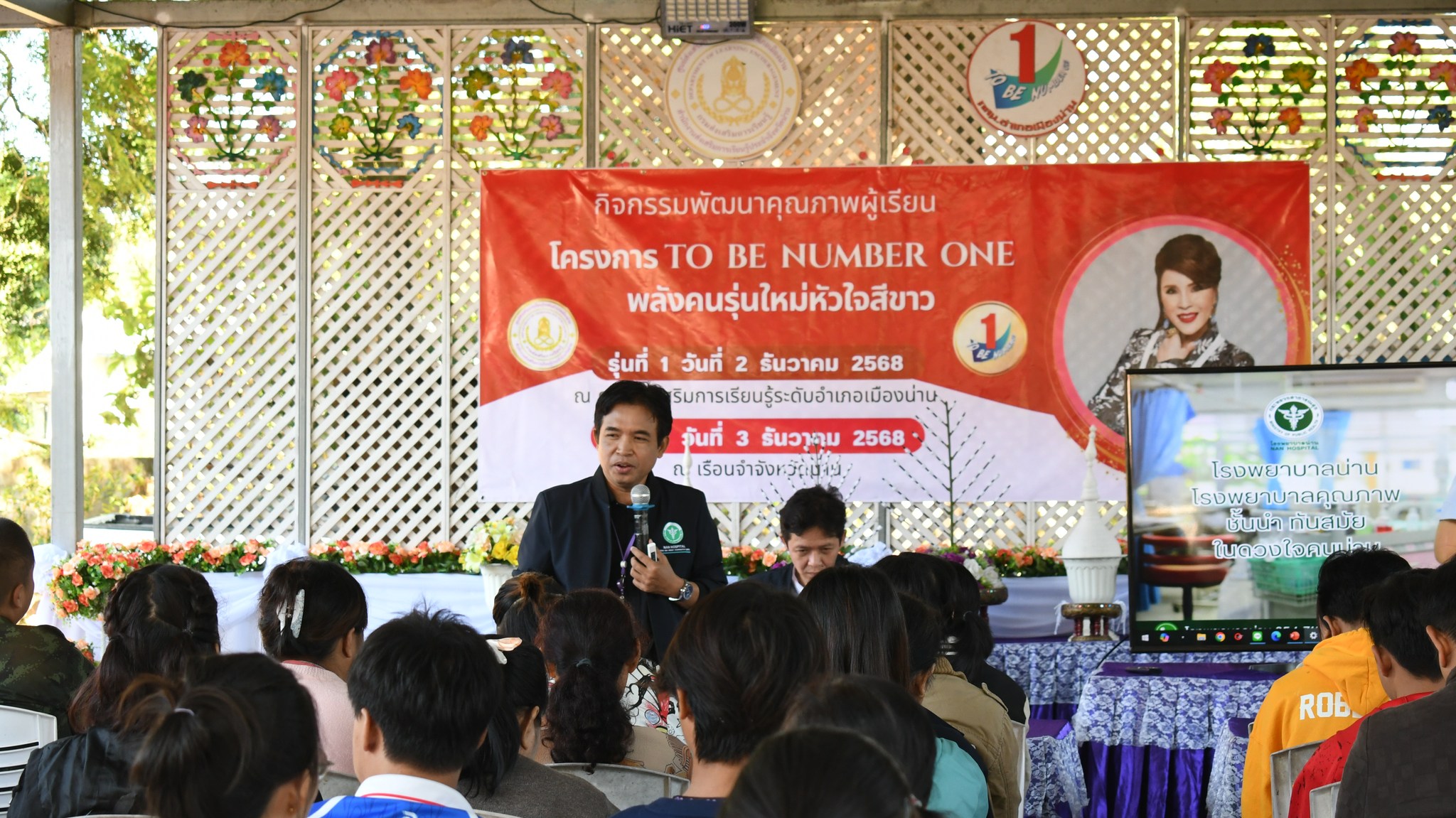 วันที่ 2 ธันวาคม 2568 สกร.ระดับอำเภอเมืองน่าน จัดกิจกรรมพัฒนาคุณภาพผู้เรียน โครงการ TO BE NUMBER ONE พลังคนรุ่นใหม่หัวใจสีขาว รุ่นที่ 1 จำนวน 100 คน โดยมีนายนพพร เรืองสว่าง นายอำเภอเมืองน่าน เป็นประธานในพิธี และบรรยายพิเศษ ปฐมนิเทศนักศึกษาใหม่ ภาคเรียนที่2/2568 โดยนางสาวดรุณี กาบบัว รอง ผอ.สนง.ประจำจังหวัดน่าน พร้อมด้วยกิจกรรมให้ความรู้พิษภัยและประเภทยาเสพติดรวมถึงโทษของยาเสพติด จากวิทยาโรงพยาบาลน่าน ณ สกร.ระดับอำเภอเมืองน่าน